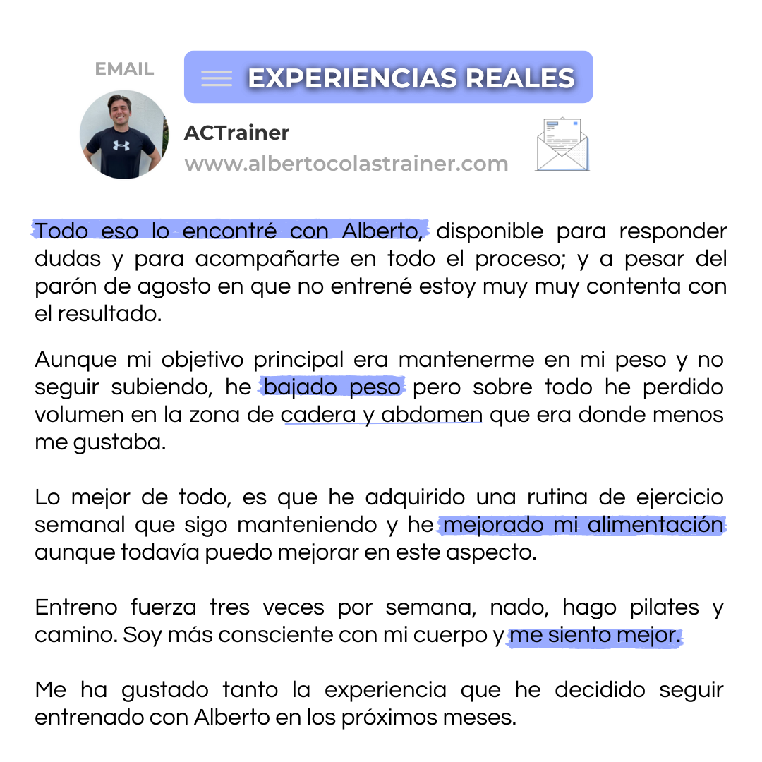 Hablaremos cada semana para que sientas ese apoyo y no te sientas sola en el proceso.
